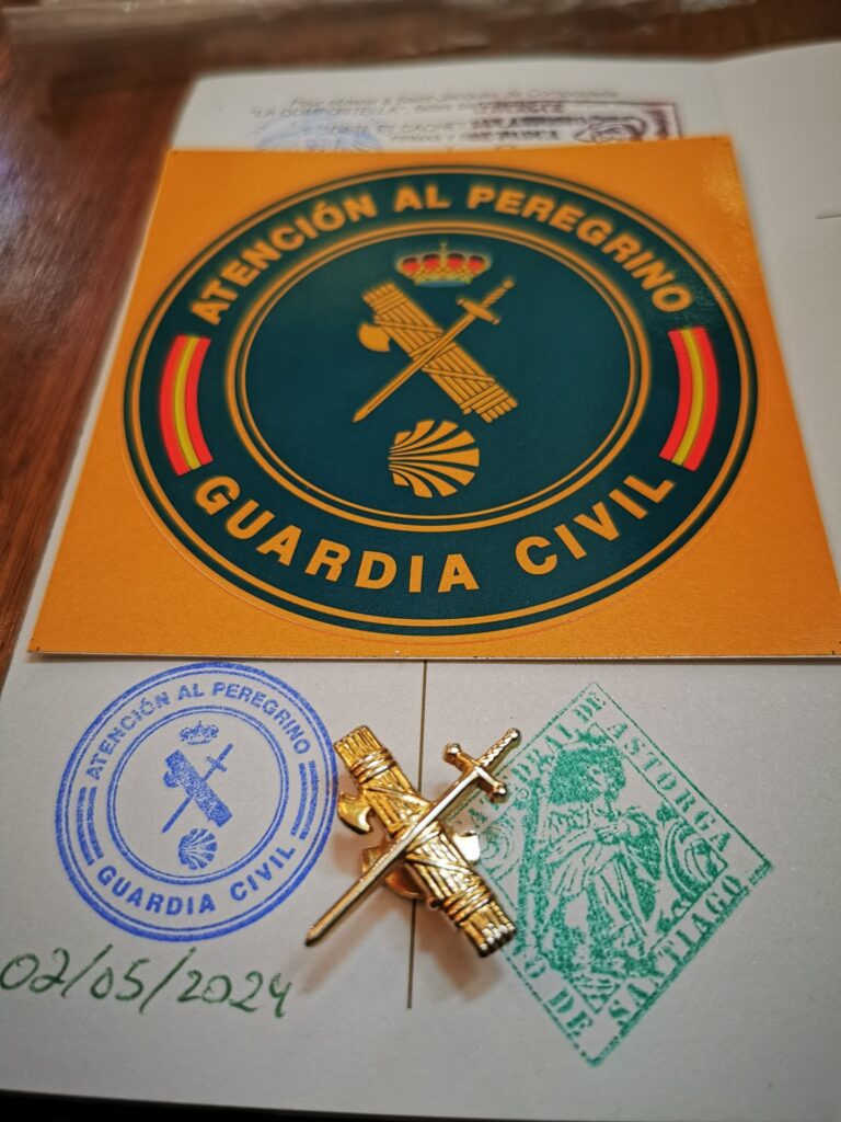 Heute traf ich, kurz vor meinem Ziel Astorga, die mobile Wache der Guardia Civil für Pilger. Nach einem entspannten Plausch auf Englisch bei Tee und Gebäck erhielt ich dann meinen Stempel ins Buch, den Aufkleber der Guardia Civil al Peregrino und, als deutscher Kollege, ihr offizielles Abzeichen für die Mütze. Vielen lieben Dank, Guardia Civil, ich werde es mit Stolz den restlichen Weg an meinem Hut tragen! 😊